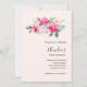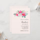 Convite de festa de aniversário com uma imagem caprichosa em aquarela. Uma bela composição floral com cores rosa brilhante e rosa pastel aninhadas entre folhas verdes e raminhos.