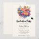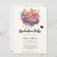 Convite de formatura com uma coleção colorida de flores de primavera e verão. Tons rosa, laranja e azul dominam a paleta de cores. Arranjo floral brilhante e ousado exala felicidade. :)