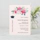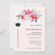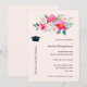 Convite de formatura com imagem aquarela caprichosa. Uma bela composição floral com cores rosa brilhante e rosa pastel aninhadas entre folhas verdes e raminhos.