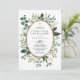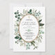 Este elegante convite botânico tem uma linda aquarela desenhada à mão eucalipto verde e falso fundo de ouro