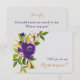Peça a ela para ser sua dama de honra com este lindo cartão de imagem floral em aquarela! Ele apresenta uma imagem de um buquê roxo, dourado claro e verde no canto superior esquerdo, com seu texto personalizado na parte inferior direita. A imagem e o texto são colocados sobre um fundo cinza claro suave. O verso do cartão tem campos de texto adicionais para você personalizar no mesmo fundo cinza. Este cartão combina com os convites de casamento e outros produtos de casamento em nossa loja.