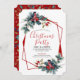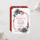 Uma ilustração Elegante das aquarelas modernas. Morangos holly vermelhos de Natal e borda vermelha de buquê com uma estrutura geométrica vermelha moderna. Convite de festas de Natal personalizável.
