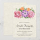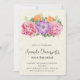 Um convite de aniversário elegante e sofisticado. Um lindo buquê de flores de aquarela composto por peônias rosa, anêmonas roxas e tulipas laranja, rodeado por folhas verdes. Alguns enfeites ondulados em rosa adicionam um toque de elegância.