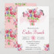 Convite Buquê Floral Rosa e Borboletas Brunch de Páscoa