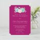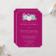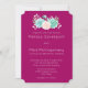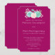 Um convite de casamento com fundo magenta. Um buquê de aquarela em cores pastéis no topo. As flores, folhas e raminhos são rosa pastel e verde.