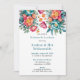 Um arranjo floral vívido e detalhado que mostra peões em turquesa, laranja e matizes. As pétalas ricas e em camadas e os centros luminosos são complementados por folhas verdes e flores de laranja menores. O buquê é composto artisticamente pelas flores radiando para fora, evocando elegância e harmonia.
