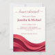 The design is predominantly burgundy, creating a bold and sophisticated backdrop, while a light barely ivory area for text ensuring your event details remain crisp, readable, and beautifully elevated. The flowing wave artwork adds depth and dimension, echoing the soft folds and luxe textures seen in modern winter wedding décor.
