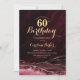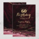 Borgonha e ouro agata 60º convite de aniversário. Elegante design moderno, com vinho de marsala, cor vermelha escura, fundo geode de mármore agate, dourado falso brilho e letra tipografia. Trendy convida o cartão perfeito para uma comemoração de dia das mulheres na moda. Impressos convites Zazzle ou modelo de impressão digital instantânea para download.
