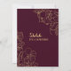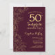 Burgundy Dourada Surpresa Floral 50º Convite de aniversário. Design de marrom moderno minimalista com sotaque botânico e letra de escrita tipográfica. Simples cartão de convite floral perfeito para uma festa surpresa na moda. Pode ser personalizado para qualquer idade.