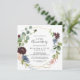 Este convite de aniversário de casamento de 50 anos em burgundy dourado geométrico é perfeito para um evento moderno. O design elegante boho apresenta flores em tons de azul naval, rosa e vinho com detalhes a lápis artísticos.