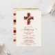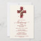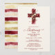 Burgundy Elegant Glitter Effect Floral Cross Christian Baptism Invitation Card Design with Coordinated Back Stripes.