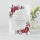 This elegant design features deep burgundy roses paired with soft charcoal and grey eucalyptus leaves. The watercolor style creates a romantic and moody atmosphere, perfect for a sophisticated winter event. Bold floral clusters anchor the composition, balancing rich crimson tones with muted foliage.