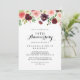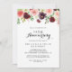 Este convite de bodas de ouro 50 anos com flores burgundy de primavera é perfeito para uma celebração romântica de aniversário de casamento. O design pintado à mão apresenta folhas verdes, rosas deslumbrantes rosa, bege, roxo, vermelho, branco e burgundy, peônias cuidadosamente arranjadas em pequenos buquês fofos.