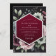 Deep burgundy hues blend with muted blush and grey blooms against a dark backdrop, creating a moody and romantic atmosphere. Delicate floral arrangements evoke a sense of twilight elegance. This design captures the essence of a sophisticated, ethereal celebration.