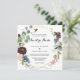 Este convite de casamento floral e verde espanhol é perfeito para um casamento no inverno. O elegante design apresenta marinho de aquarela, cor-de-rosa-pincelada e flores de sombra de vinho com detalhes artísticos lápis.