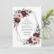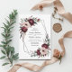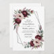 This elegant wedding invitation features a soft geometric frame surrounded by delicate watercolor florals in rich burgundy, deep wine-red, and soft blush tones. A refined serif and script font combination adds a timeless touch, making it perfect for couples seeking a modern yet romantic aesthetic. Ideal for summer, fall, or garden-themed weddings, this invitation beautifully blends contemporary design with natural floral charm.