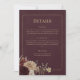 Share reception, accommodation, and wedding website information in style with this burgundy floral gothic details card. Featuring a deep burgundy background, soft gold text, and romantic vintage florals, it adds a refined touch to your invitation suite. Ideal for gothic, witchy, or moody weddings with a luxurious feel. Fully customizable to suit your event details. Designed to coordinate seamlessly with the Burgundy Floral Wedding Collection.