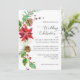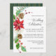 "Burgundy Floral Natal Verde Dourado Convite para Casamento Holly." Design de Natal elegante com Poinsettias vermelhas, rosas selvagens brancos, folhas e bagas ocas, cones de pínus e folhagem de pínus com verde-azulado. O verso tem um verde profundo e rico de floresta de spruce com um padrão fino de risca de ouro brilhante. Arte pintada por uma artista e designer licenciada internacionalmente reconhecida, Audrey Jeanne Roberts, copyright.