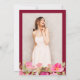 Torne a sua doce celebração de 16 anos realmente especial com o nosso Convite Romântico à Palha Rosa Pintado pela Mão! Este convite bonito e chic apresenta uma bela borda de flores rosa pintadas à mão e folhas verdes exuberantes, criando uma encantadora e vibrante cena de jardim, e adicione sua foto no fundo. A delicada design de aquarela acrescenta um toque caprichoso e romântico sobre um fundo vermelho de burgundy editável. A palavra "Dezesseis" destaca-se numa luxuosa letra falsa do guião dourado, expondo elegância e sofisticação. Perfeito para uma na moda e elegante festa do jardim de Verão Sweet 16, este convite combina elementos florais artísticos com a tipografia moderna, fazer que seja uma escolha excepcional para celebrar este marco significativo.