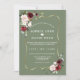 ALL IN ONE INVITATION! By including the details and RSVP (optional) on the back of the wedding invitation instead of on a separate enclosure card you can save paper. Unique, modern design featuring watercolor burgundy pink flowers, faux gold frame, on a sage green background. Use Personalize tool to easy add your info and photo. For matching items, please, visit my Watercolor Floral Sage Green Wedding Collection.