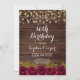 Convite Burgundy Floral String Lights 80 Festa de aniversá