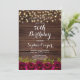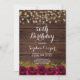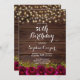 Country Rustic Burgundy Marsala Floral | Barn Wood 50º Modelo Convite de aniversário. Vermelho vermelho-burlu, rosas de cor d'água de marsala, design de casamento com folhas verdes em arranjo floral botânico e luzes de cordas em madeira castanha-escura. Apresentar um elegante design de tipografia manuscrita. festa de aniversário excelente para adultos para ela: 15 16º 18º 20 2130 40º 50º 60º 70 80 13 100º ou qualquer idade. Por favor, note que este design é um efeito fotográfico impresso sem madeira. 3348