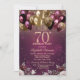 Convite Burgundy Glitter Balões Flores 70 Aniversário