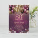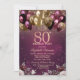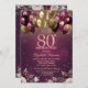 Convite Burgundy Glitter Balões Flores 80 Aniversário