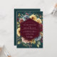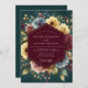 This dramatic and opulent botanical design features a rich, jewel-toned palette. Against a deep teal background, a lush floral arrangement bursts with color. Painterly illustrations of buttery yellow roses, pale blue anemones, and deep crimson blossoms create a moody and romantic atmosphere perfect for a sophisticated event.