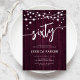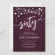 60º Convite de aniversário. Design russo com padrão de madeira de marrom burgundy. Cartão de convite clássico com luzes de fada e fonte branca de script. Perfeito para uma comemoração de na moda sexagésimo dia. Personalize com seus próprios detalhes. Pode ser personalizado para qualquer idade! Impressos convites Zazzle ou modelo de impressão digital instantânea para download.