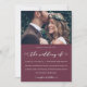 Bonito Burgundy Marsala e convite para casamento branco. Este simples convite é uma maneira chique de deixar os convidados saberem da sua cerimônia de casamento. Este anúncio da moda apresenta um encantador roteiro de caligrafia branca "o casamento de" em um fundo escuro de burgundy com a foto do casal, e uma parte branca do cartão.