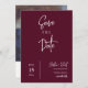 Este moderno evento de casamento ao estilo minimalista salve a data convite com lindas características tipográficas de escrita e fontes serif simples com fundo burgundy. É perfeito para qualquer tema de casamento. Substitua a foto pela sua no verso do convite para lhe dar um toque pessoal agradável. Se precisar alterar a cor, você pode personalizar o cartão de convite. Você pode personalizar e personalizar o convite para ajustado das suas necessidades de evento de casamento e clicar em personalizar o convite. Você pode personalizar facilmente este convite com seu próprio texto e compartilhá-lo com seus convidados digitalmente — seja através de texto, email ou mídia social. Se preferir, você também tem a opção de enviar uma versão impressa para seus convidados. Ou, você pode fazer ambos — enviar uma versão digital e acompanhar com uma cópia impressa para um toque pessoal!
