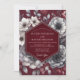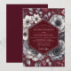 A deep, dramatic floral arrangement in rich burgundy hues creates a romantic and enchanting atmosphere. Delicate blooms in shades of grey and white intertwine with dark foliage, evoking a sense of moody elegance. This design is perfect for an autumnal or winter affair, offering a sophisticated and captivating aesthetic.