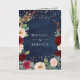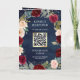 Convite Burgundy Peach Floral QR Code Navy Blue Wedding