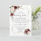 ALL IN ONE invitation. By including the details and RSVP (optional) on the back of the wedding invitation instead of on a separate enclosure card you can save paper. Elegant design featuring a faux gold frame adorned with watercolour burgundy and pink flowers, on a white background. Use Personalize tool to add your info. Matching items could be found in my Burgundy Blush Flowers Collection.