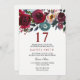Convite Burgundy Red Floral Elegante 17º Aniversário Convi