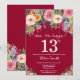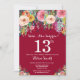 Convite Burgundy Red Floral Surpresa 13 Aniversário