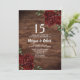 Convite de Aniversário de Casamento de 15 Anos Rústico Rosa Vermelho Rubi Burgundy