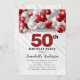 Convite Burgundy Red Silver Balloon Glitter 50º Aniversári