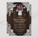 Elegante convite de casamento floral rústico e arrogante com um buquê de rosas e flores de hálito de bebê dentro a mason jar contra um fundo de madeira de celeiro adornado com rendas florais brancas e luzes de cordas. Design de cartão perfeito para convidar seus hóspedes para sua festa de casamento rusticada. Personalize facilmente este convite de casamento com os seus detalhes de casamento online. Design totalmente personalizável. Itens correspondentes disponíveis.