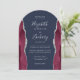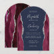 Convite Burgundy Silver Agate Navy Blue Arch Shape Wedding