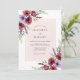 This design features a romantic watercolor palette of deep burgundy and soft lavender. Striking anemones and delicate sprigs are nestled among sage green foliage, creating a graceful botanical aesthetic. The soft pink tones enhance the elegant floral clusters, making it ideal for a sophisticated seasonal event.
