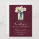 Convite Burgundy Wood Daisies Mason Jar QR Code Wedding