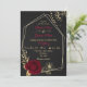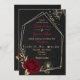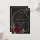 burgundy de luxo elegante e flores douradas com algumas folhas de ouro em quadro geométrico convite ao casamento negro Os detalhes da brilha são simulados