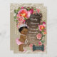 Burlap chic, rendas e pérolas russos com uma adorável princesa étnica africana em calças de rúfle vestindo uma corda de pérolas em uma bela braçadeira e fundo de renda. Este chic rustic burlap lace e o convite para chás de fraldas pérolas são facilmente personalizados para o seu evento, adicionando os seus detalhes no estilo e cor da fonte, bem como o texto da sua escolha.