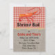 Gingham branco vermelho com braçadeira e cordas de nó bronzeado com um camarão giro no topo... frente e trás estão prontos para você editar.