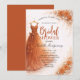 Elegant burnt orange bridal shower design featuring a refined bridesmaid dress illustration with soft floral accents. A warm and bold style ideal for fall, boho, or modern bridal shower celebrations with a rich burnt orange palette.