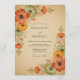 This design evokes a warm, autumnal feel with rich burnt orange, amber, and muted green blossoms. Delicate painterly brushstrokes create a soft, romantic atmosphere, perfect for a cozy, nature-inspired matrimonial event.