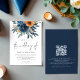 Convite Burnt Orange Navy Florals QR Code Wedding