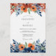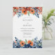 A vibrant watercolor design featuring bold burnt orange blooms accented by deep indigo and sage green foliage. The artistic arrangement evokes a rich, painterly aesthetic for a memorable occasion.